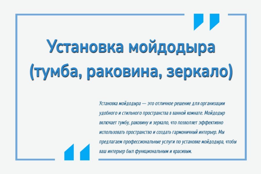 - Опыт и профессионализм: Наши специалисты имеют многолетний опыт установки мойдодыра, что гарантирует качественное и аккуратное выполнение всех работ.